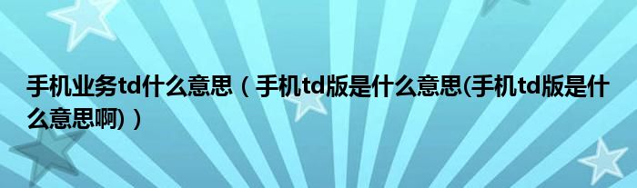 大家好,小常来为大家解答以上问题。手机业务td什么意思,手机td版是什么意思(手机td版是什么意思啊)很多人还不知道,现在让我们一起来看看吧!