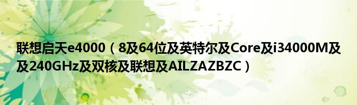 大家好,小常来为大家解答以上问题。联想启天e4000,8及64位及英特尔及Core及i34000M及及240GHz及双核及联想及AILZAZBZC很多人还不知道,现在让我们一起来看看吧!