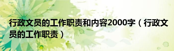 关于行政文员的工作职责和内容2000字,行政文员的工作职责这个很多人还不知道,今天菲菲来为大家解答以上的问题,现在让我们一起来看看吧!