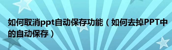 1、ppt菜单栏内有个“选项”,点击之后选“保存”,其中一项是“保存自动恢复信息”,把它前面的勾取消就可以了。