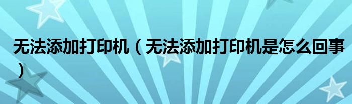 大家好,小常来为大家解答以上问题。无法添加打印机,无法添加打印机是怎么回事很多人还不知道,现在让我们一起来看看吧!