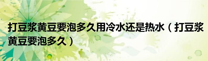 关于打豆浆黄豆要泡多久用冷水还是热水,打豆浆黄豆要泡多久这个很多人还不知道,今天菲菲来为大家解答以上的问题,现在让我们一起来看看吧!