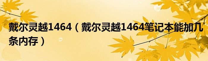 2,戴尔灵越1464笔记本能加几条内存:戴尔灵越1464笔记本能加2条内存,这个笔记本是有两个内存插槽的,下面是笔记本的配置参数: 屏幕:14英寸 分辨率:1366x768 CPU型号:Intel 酷睿i3 330M CPU主频:2.13GHz 内存容量:2GB 内存插槽:2个 内存类型:DDRIII 1066 硬盘容量:250GB 显卡芯片:ATI Mobility Radeon HD 4330 显存容量:512MB
