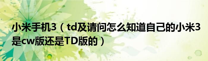 大家好,小常来为大家解答以上问题。小米手机3,td及请问怎么知道自己的小米3是cw版还是TD版的很多人还不知道,现在让我们一起来看看吧!