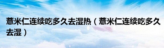 大家好,小晋来为大家解答以下问题,关于薏米仁连续吃多久去湿热,薏米仁连续吃多久去湿很多人还不知道,今天让我们一起来看看吧!