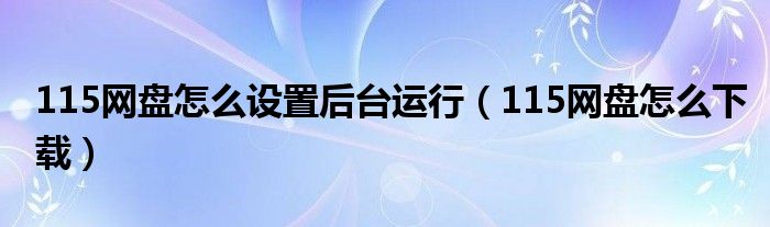 大家好,今天小悦来为大家解答以上问题。115网盘怎么设置后台运行,115网盘怎么下载很多人还不知道,现在让我们一起来看看吧!
