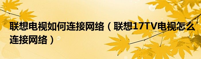 大家好,今天小悦来为大家解答以上问题。联想电视如何连接网络,联想17TV电视怎么连接网络很多人还不知道,现在让我们一起来看看吧!