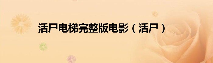 活尸电梯完整版电影,活尸这个很多人还不知道,小飞来为大家解答以上的问题。现在让我们一起来看看吧!