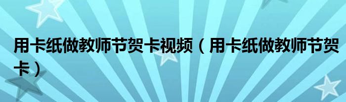 用卡纸做教师节贺卡视频,用卡纸做教师节贺卡这个很多人还不知道,小飞来为大家解答以上的问题。现在让我们一起来看看吧!