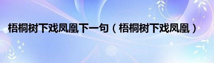 梧桐树下戏凤凰下一句,梧桐树下戏凤凰这个很多人还不知道,小飞来为大家解答以上的问题。现在让我们一起来看看吧!