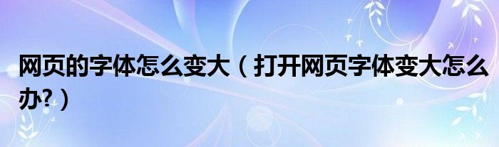 大家好,今天小悦来为大家解答以上问题。网页的字体怎么变大,打开网页字体变大怎么办?很多人还不知道,现在让我们一起来看看吧!