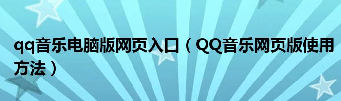 大家好,今天小悦来为大家解答以上问题。qq音乐电脑版网页入口,QQ音乐网页版使用方法很多人还不知道,现在让我们一起来看看吧!
