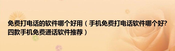 大家好,今天小悦来为大家解答以上问题。免费打电话的软件哪个好用,手机免费打电话软件哪个好?四款手机免费通话软件推荐很多人还不知道,现在让我们一起来看看吧!