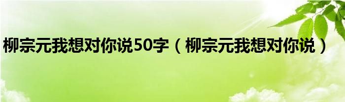 柳宗元我想对你说50字,柳宗元我想对你说这个很多人还不知道,小飞来为大家解答以上的问题。现在让我们一起来看看吧!