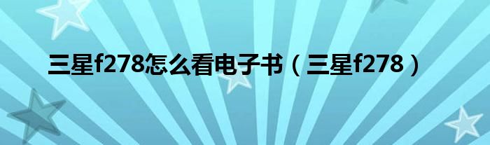 三星f278怎么看电子书,三星f278这个很多人还不知道,小飞来为大家解答以上的问题。现在让我们一起来看看吧!