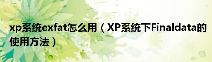 大家好,今天小悦来为大家解答以上问题。xp系统exfat怎么用,XP系统下Finaldata的使用方法很多人还不知道,现在让我们一起来看看吧!