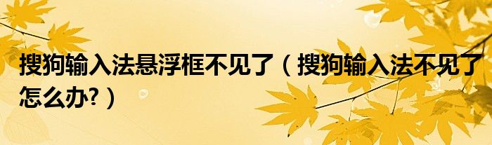大家好,今天小悦来为大家解答以上问题。搜狗输入法悬浮框不见了,搜狗输入法不见了怎么办?很多人还不知道,现在让我们一起来看看吧!