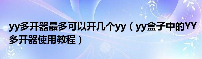 大家好,今天小悦来为大家解答以上问题。yy多开器最多可以开几个yy,yy盒子中的YY多开器使用教程很多人还不知道,现在让我们一起来看看吧!
