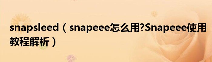 大家好,今天小悦来为大家解答以上问题。snapsleed,snapeee怎么用?Snapeee使用教程解析很多人还不知道,现在让我们一起来看看吧!