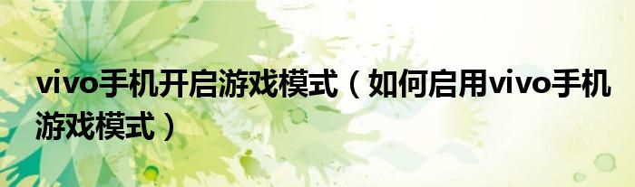 以上就是如何启用vivo手机游戏模式的方法。