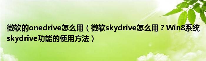 大家好,今天小悦来为大家解答以上问题。微软的onedrive怎么用,微软skydrive怎么用?Win8系统skydrive功能的使用方法很多人还不知道,现在让我们一起来看看吧!