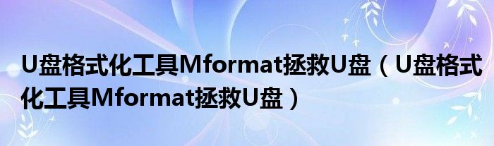 大家好,今天小悦来为大家解答以上问题。U盘格式化工具Mformat拯救U盘,U盘格式化工具Mformat拯救U盘很多人还不知道,现在让我们一起来看看吧!