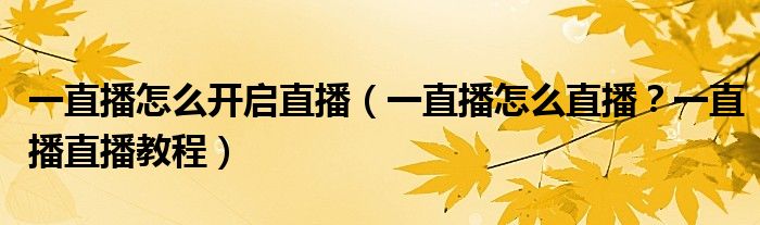 大家好,今天小悦来为大家解答以上问题。一直播怎么开启直播,一直播怎么直播?一直播直播教程很多人还不知道,现在让我们一起来看看吧!