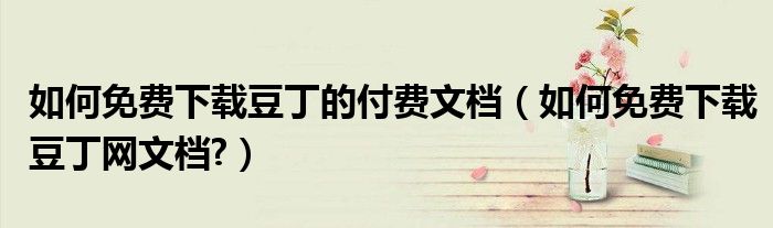 大家好,今天小悦来为大家解答以上问题。如何免费下载豆丁的付费文档,如何免费下载豆丁网文档?很多人还不知道,现在让我们一起来看看吧!