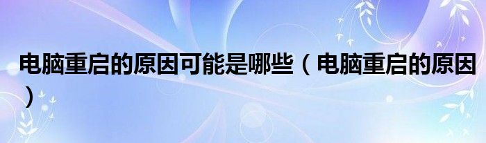大家好,小飞来为大家解答以上问题,电脑重启的原因可能是哪些,电脑重启的原因很多人还不知道,现在让我们一起来看看吧!