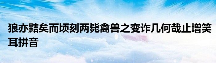 关于狼亦黠矣而顷刻两毙禽兽之变诈几何哉止增笑耳拼音这个很多人还不知道,今天菲菲来为大家解答以上的问题,现在让我们一起来看看吧!