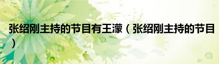 关于张绍刚主持的节目有王濛,张绍刚主持的节目这个很多人还不知道,今天菲菲来为大家解答以上的问题,现在让我们一起来看看吧!