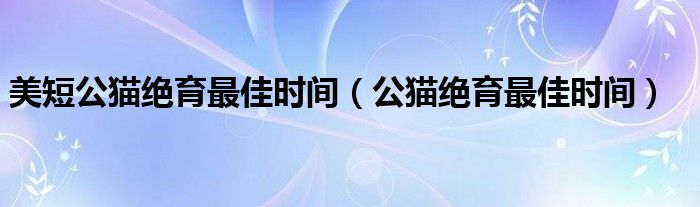 关于美短公猫绝育最佳时间,公猫绝育最佳时间这个很多人还不知道,今天菲菲来为大家解答以上的问题,现在让我们一起来看看吧!