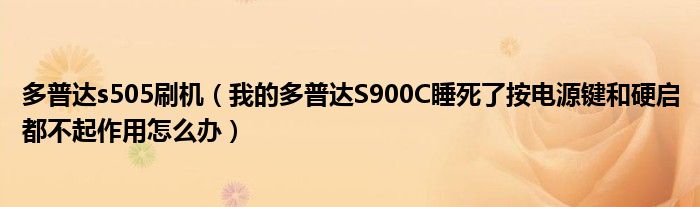 大家好,小常来为大家解答以上问题。多普达s505刷机,我的多普达S900C睡死了按电源键和硬启都不起作用怎么办很多人还不知道,现在让我们一起来看看吧!