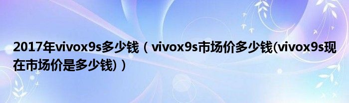 大家好,小常来为大家解答以上问题。2017年vivox9s多少钱,vivox9s市场价多少钱(vivox9s现在市场价是多少钱)很多人还不知道,现在让我们一起来看看吧!