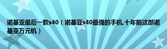 大家好,小常来为大家解答以上问题。诺基亚最后一款s40,诺基亚s40最强的手机,十年前这部诺基亚万元机很多人还不知道,现在让我们一起来看看吧!