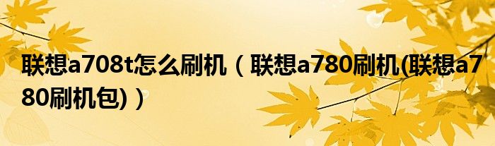 大家好,小常来为大家解答以上问题。联想a708t怎么刷机,联想a780刷机(联想a780刷机包)很多人还不知道,现在让我们一起来看看吧!