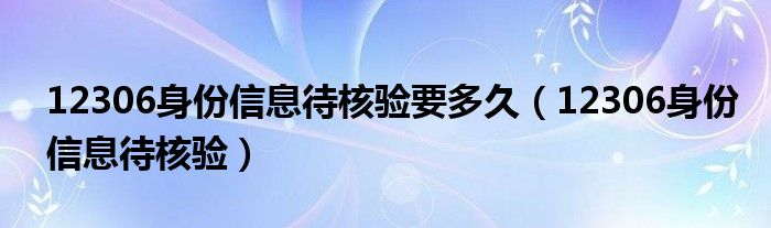大家好,慧慧来为大家解答以上问题,12306身份信息待核验要多久,12306身份信息待核验很多人还不知道,现在让我们一起来看看吧!