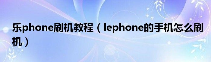 1,lephone的手机怎么刷机: