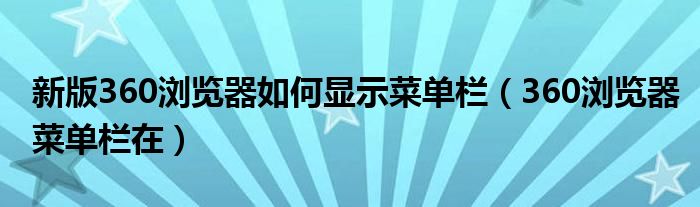 关于新版360浏览器如何显示菜单栏,360浏览器菜单栏在这个很多人还不知道,今天菲菲来为大家解答以上的问题,现在让我们一起来看看吧!