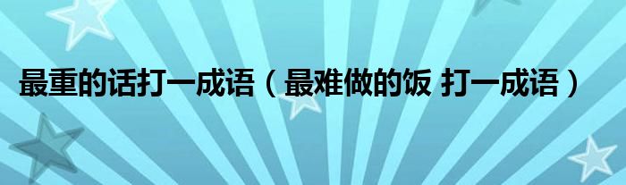 关于最重的话打一成语,最难做的饭 打一成语这个很多人还不知道,今天菲菲来为大家解答以上的问题,现在让我们一起来看看吧!