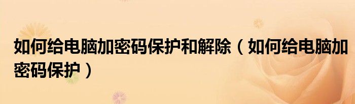关于如何给电脑加密码保护和解除,如何给电脑加密码保护这个很多人还不知道,今天菲菲来为大家解答以上的问题,现在让我们一起来看看吧!