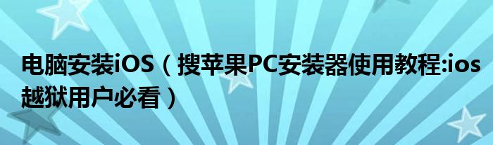 大家好,今天小悦来为大家解答以上问题。电脑安装iOS,搜苹果PC安装器使用教程:ios越狱用户必看很多人还不知道,现在让我们一起来看看吧!