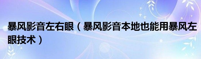 大家好,今天小悦来为大家解答以上问题。暴风影音左右眼,暴风影音本地也能用暴风左眼技术很多人还不知道,现在让我们一起来看看吧!