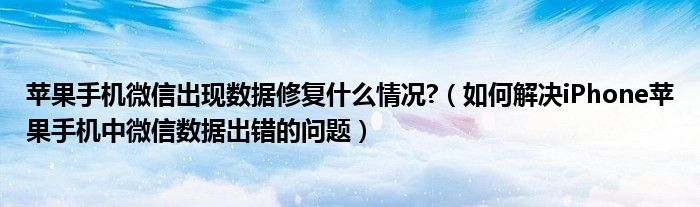 大家好,小太来为大家解答以上问题。苹果手机微信出现数据修复什么情况?,如何解决iPhone苹果手机中微信数据出错的问题很多人还不知道,现在让我们一起来看看吧!