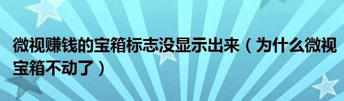 大家好,跳跳为你解答以上问题。微视赚钱的宝箱标志没显示出来,为什么微视宝箱不动了这个问题很多人还不知道,现在让我们一起来看看吧!