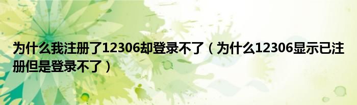 解答:1、以12306 5.1.2版本为例。2306显示已经注册但无法登录,因为: