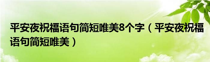 大家好,慧慧来为大家解答以上问题,平安夜祝福语句简短唯美8个字,平安夜祝福语句简短唯美很多人还不知道,现在让我们一起来看看吧!