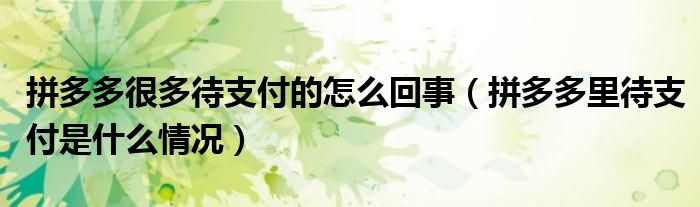 大家好,跳跳为你解答以上问题。拼多多很多待支付的怎么回事,拼多多里待支付是什么情况这个问题很多人还不知道,现在让我们一起来看看吧!