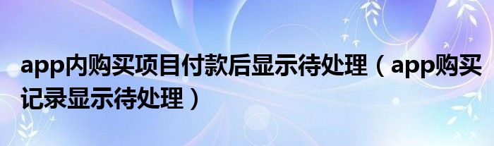大家好,跳跳为你解答以上问题。app内购买项目付款后显示待处理,app购买记录显示待处理这个问题很多人还不知道,现在让我们一起来看看吧!
