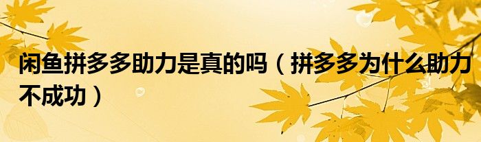 大家好,跳跳为你解答以上问题。闲鱼拼多多助力是真的吗,拼多多为什么助力不成功这个问题很多人还不知道,现在让我们一起来看看吧!